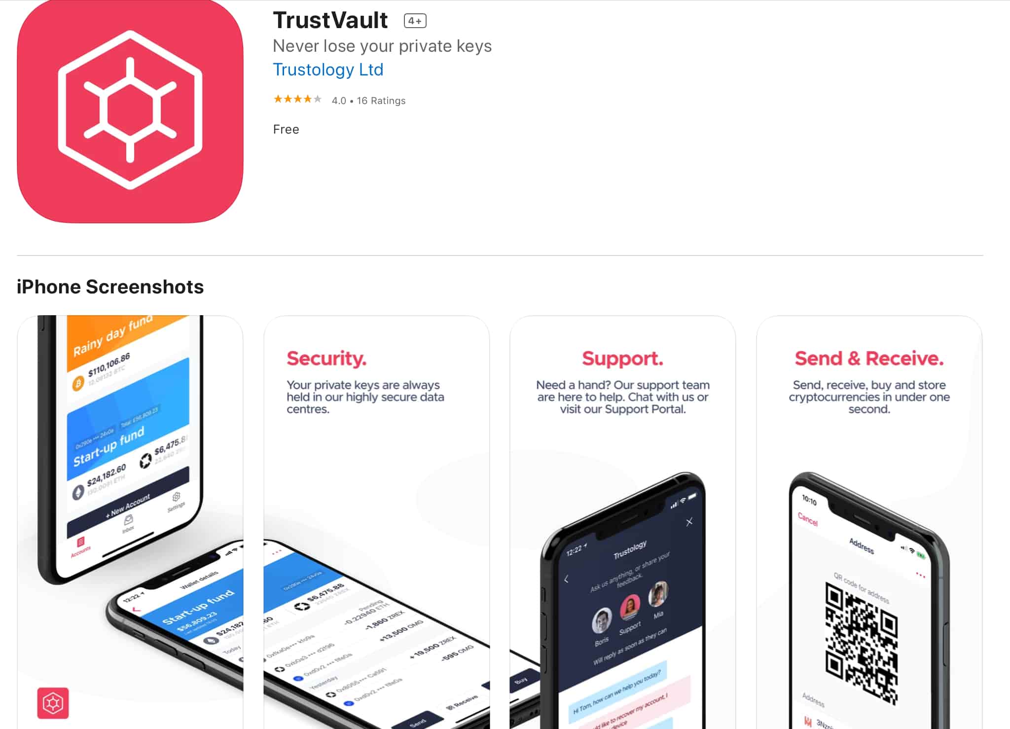 O aplicativo TrustVault possui uma classificação de quatro estrelas, embora tenha apenas 16 críticas. É provável que uma vez que a confiança seja agora voltado especialmente para os corretores, emissores de token e investidores institucionais, o número de usuários individuais não é tão grande quanto em outras carteiras.