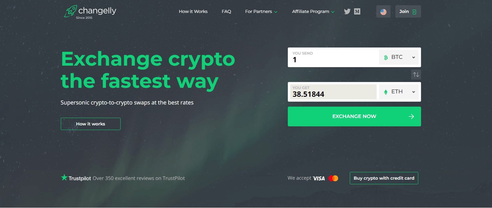 Enquanto o ShapeShift suporta apenas a troca entre criptomoedas, Changelly também suporta o Troca de EUR e USD com criptomoedas. Os usuários podem comprar criptomoedas com cartões de débito ou crédito. Você deve passar por uma revisão para poder usar esta opção. Você também paga taxas mais altas, 5 % da Changelly e 5 % vão para o processador de pagamento. O processo de troca da Fiat para criptomoedas é rápido em cerca de 10 a 30 minutos.