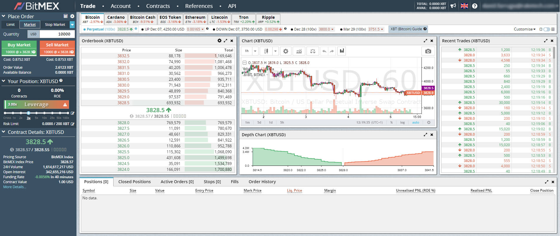 Bitmex Possui um conjunto de ferramentas de negociação profissional e possui alguns recursos que muitas outras trocas não podem fornecer. Em termos de ferramentas, o BitMex possui um livro de pedidos, gráfico de profundidade, impressão comercial, gráfico de preços e uma série de ferramentas de análise técnica que podem ser usadas no gráfico de preços.