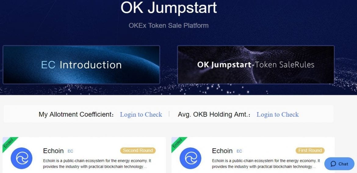 Okex segue um processo chamado alotamento de assinatura quais alotes de tokens para seus usuários. Somente os detentores do token OKB (token do Okex Exchange) são elegível para participar na venda de token. A atribuição de token depende do valor médio de retenção do OKB do usuário.