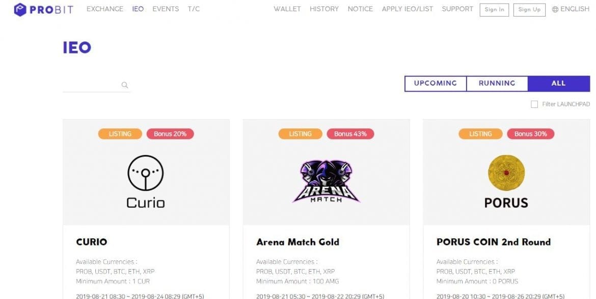 Embora o probit seja uma troca relativamente nova, é um dos primeiros a adotar o IEO e concluiu Mais de 20 eventos de venda de token em sua plataforma. Ele lista apenas projetos promissores após a realização de uma extensa revisão do projeto.