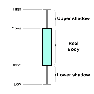 Cada vela tem um corpo e sombras saindo dela. O corpo mostra a diferença entre os preços abertos e próximos, enquanto as sombras descrevem o quão baixo ou alto esses preços foram. A sombra superior de uma vela verde é o preço próximo e sua sombra mais baixa é o preço aberto. Naturalmente, o oposto é verdadeiro para uma vela vermelha.
