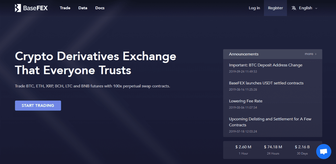 Basefex compartilha muitos dos mesmos recursos como bitmex. Ambas as plataformas são especializadas em oferecer derivados de criptomoeda com alavancas de até 100x. Embora a BaseFex seja de propriedade de uma empresa registrada em Seychelles, parece que a plataforma opera a partir de Hong Kong, assim como o BitMex.