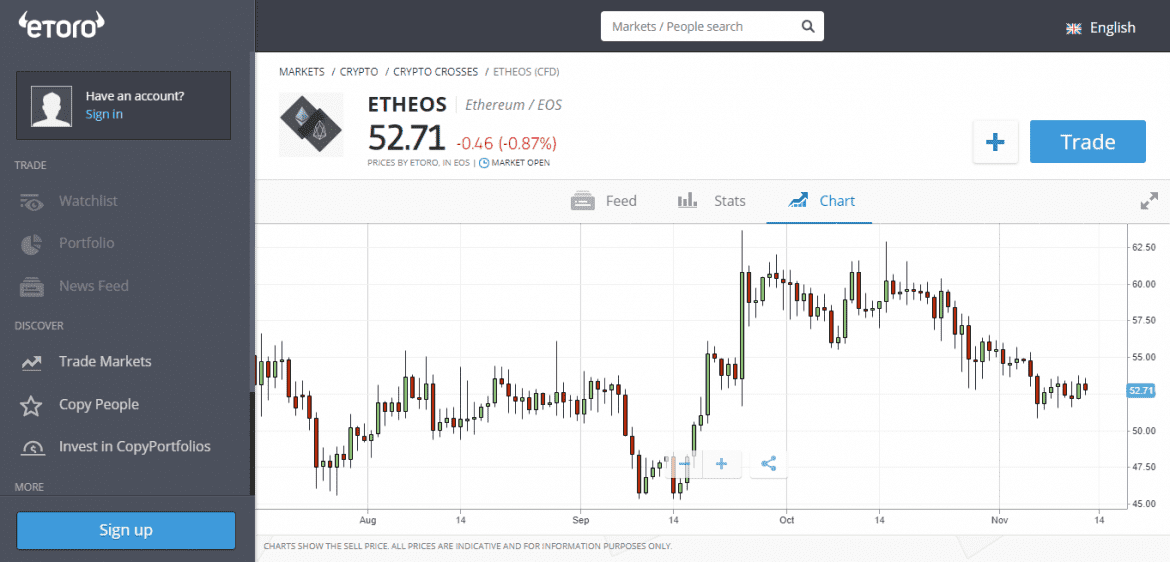 Se você está procurando comprar o Ethereum ou o EOS ou se deseja apenas especular sobre os movimentos de preços deles, a plataforma Etoro permite investir nessas e em outras criptomoedas com facilidade. Suportando uma extensa gama de métodos de pagamento, incluindo PayPal, o eToro oferece acesso a todos os principais e mais secundários tokens digitais através de uma variedade de instrumentos financeiros e ativos.