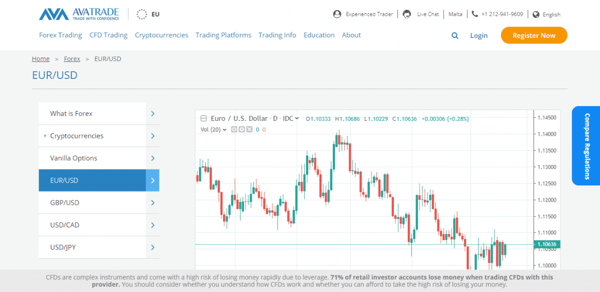 Avatrade é uma dessas plataformas, que oferece a possibilidade de negociar CFDs em vários pares principais. A plataforma é muito fácil de usar e fornece ferramentas detalhadas de análise de mercado e notícias. A plataforma também permite abrir uma conta de demonstração para testar o mercado forex sem perder seu próprio dinheiro.