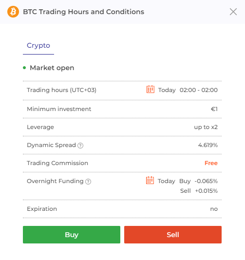 Como você pode ver nos detalhes da moeda acima, Uma taxa de troca diferente é aplicada Se você decidir Bitcoin de vendas curtas Em vez de comprar muito.