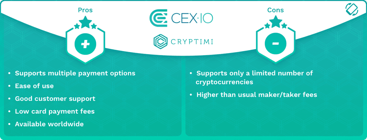 Com a seção de ajuda Cex, você pode Aprenda a ler gráficos de criptografia e Esta revisão do Cex.io Pode mostrar como aproveitar ao máximo sua conta. Você pode comprar e vender Bitcoin e Altcoin usando pagamentos de cartões, transferências bancárias ou outras criptomoedas.