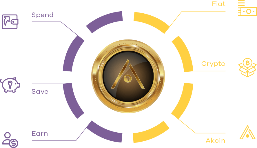 Por meio do Ecossistema Akoin, os consumidores poderão comprar, segurar e gastar criptomoeda direto de seus telefones. Isso trará o poder de volta às pessoas e à segurança de volta ao sistema de moeda. Além disso, também permitirá que as pessoas o utilizem de maneiras onde Eles podem se avançar, em vez de ser controlado pelo governo, como é o caso da moeda fiduciária.