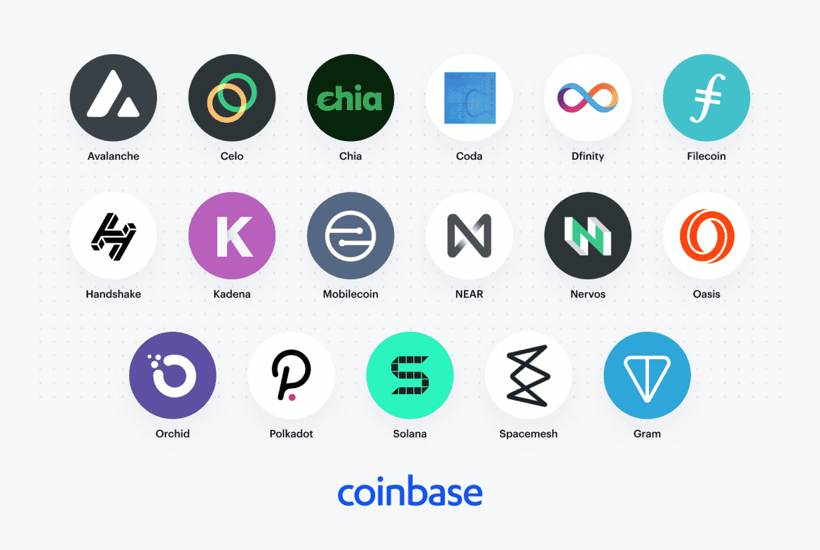 são, em ordem alfabética, avalanche, celo, chia, coda, dfinity, filecoin,