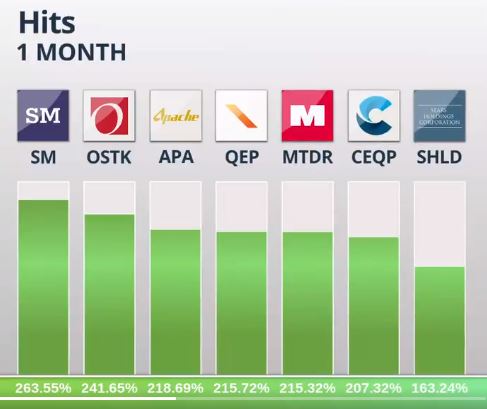 Um dos maiores vencedores e empresas mais interessantes mencionadas no vídeo é a empresa de exploração de hidrocarbonetos, A SM Energy, que viu o preço aumentar em 263% em abril. Isso foi seguido de perto pelas ações da Internet Retail Company, Overstock, cujo valor aumentou 243%. Duas empresas muito diferentes, mas com crescimento igualmente impressionante.