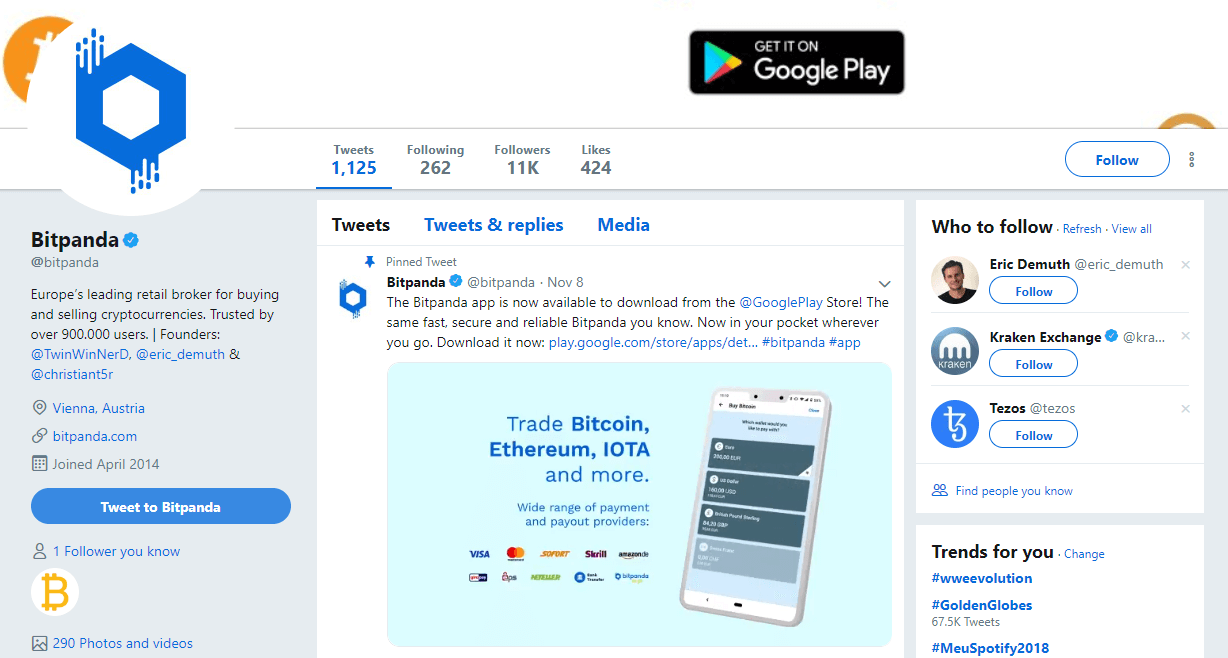 O Bitpanda é uma carteira baseada em troca que permite que os usuários especulem sobre o preço do IOTA, tanto em relação às moedas fiduciárias quanto em relação a outras criptomoedas. O Bitpanda suporta EUR, USD, CHF e EUR, permitindo que os usuários especulem nas principais moedas fiduciárias.